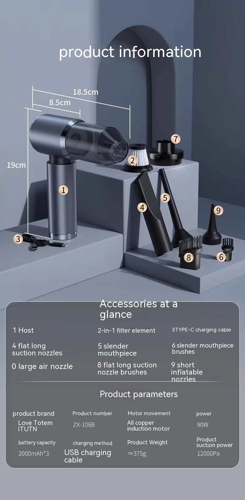 Keep your car spotless and dust-free with the Handheld Wireless Car Cleaner! Designed for powerful suction and blowing capabilities, this dual-use vacuum easily removes dust, dirt, and debris from every corner of your vehicle. Featuring a high-powered motor, cordless convenience, and a lightweight ergonomic design, this vacuum is perfect for quick and effortless cleaning.